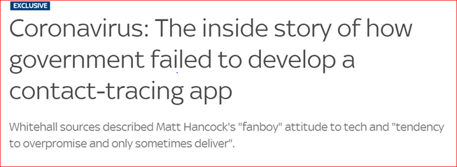 A centralised database for a contract tracing app was fatally flawed, unnecessarily complicated and phones failed to communicate via bluetooth. Multi-million pound IT contracts came to nothing.  But when ministers updated Parliament, their statements turned truth on its head.  A minister, when asked about the track and trace app, told Parliament on 18 June 2020 of “terrific progress”. He also spoke of the track and trace programme as a “remarkable national asset that protects us from the virus …”