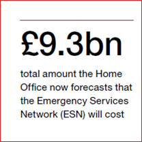 On the £9.3bn Emergency Services Network [ESN] project, which is £3.1bn over budget, the Public Accounts Committee said in 2019,