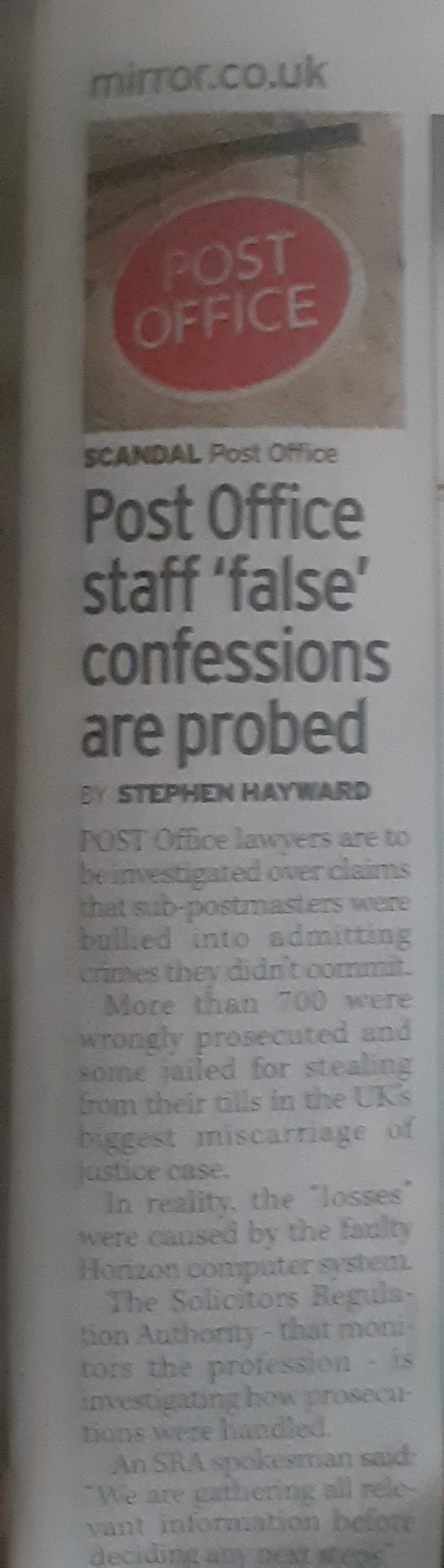 Perhaps a Post Office that is destined to spend the rest of his existence in the public sector making enemies, all watched on by an extraordinarly complacent government and criminal justice system.