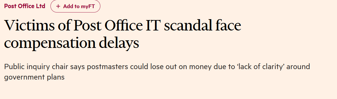[Indeed, Wallis wrote last month of a sub-postmistress Teju Adedayo whose conviction has been overturned but the Post Office is refusing to pay her compensation.]
