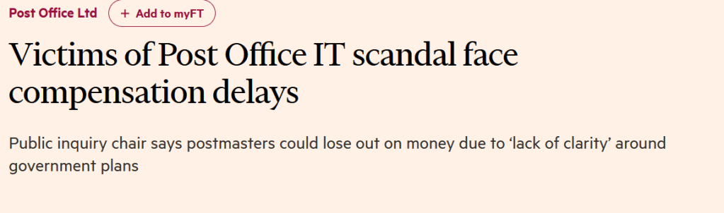– “They [the Post Office] are spinning it out [a reference to delays in paying compensation to victims]. I don’t know why. It is madness. What is motivating this blockage?”