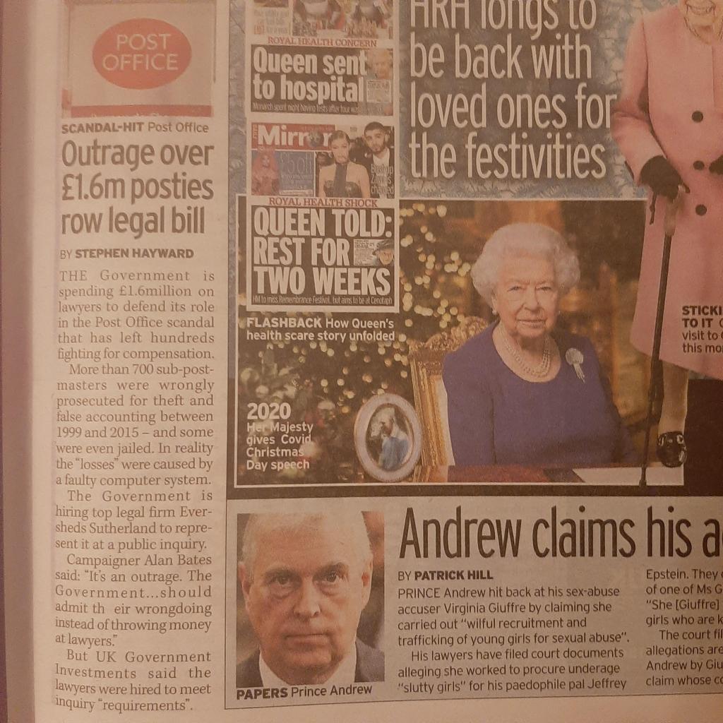 The paper says that sub-postmasters won a settlement from the Post Office in 2019 but received only an average of £20,000 each.