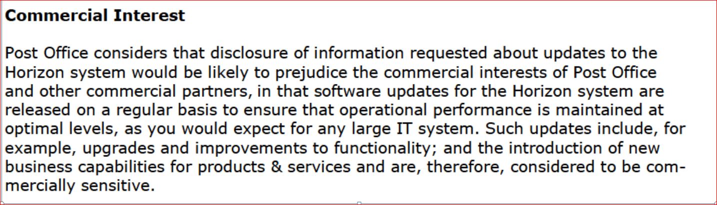 McCormack asked the Post Office for a “list of errors in Horizon that are due to be remedied in this next release and the notes held against these errors in the Known Errors Log”. Refusing his request, the Post Office said,
